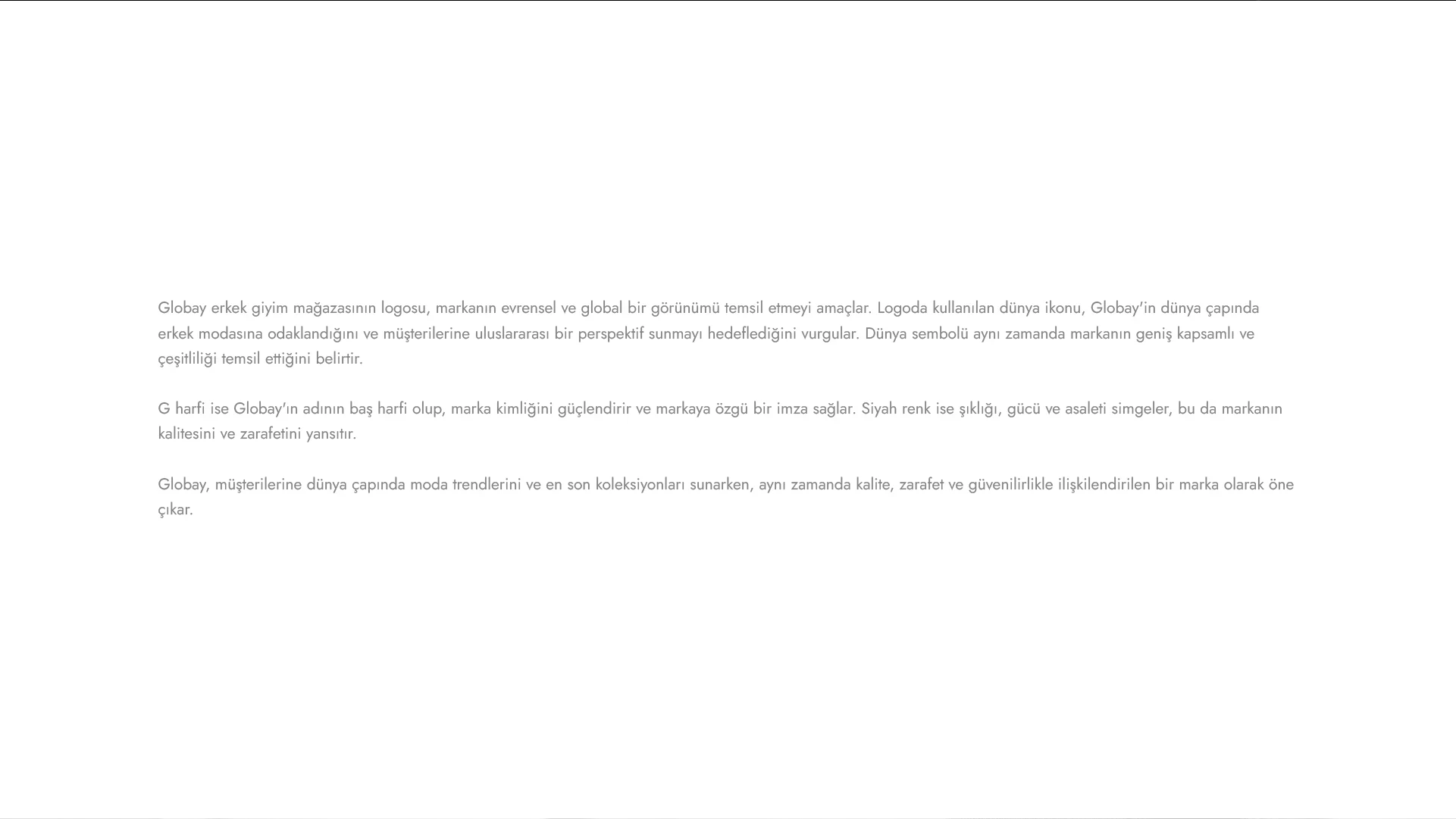 In the brand process we carried out for Globay, we analyzed the brand's style approach in the men's clothing sector and the expectations of its target audience to create a strong strategic foundation. In line with this, we developed a consistent brand identity that reflects Globay's modern, elegant, and confident stance across all touchpoints by reshaping fundamental elements such as corporate identity design, logo, color palette, typography, and visual language. Throughout the process, we blended strategy and design with a holistic approach to create a memorable and professional brand experience that enhances the brand's competitive strength.